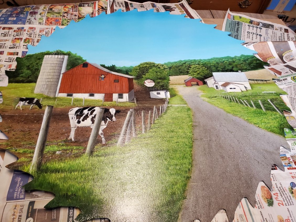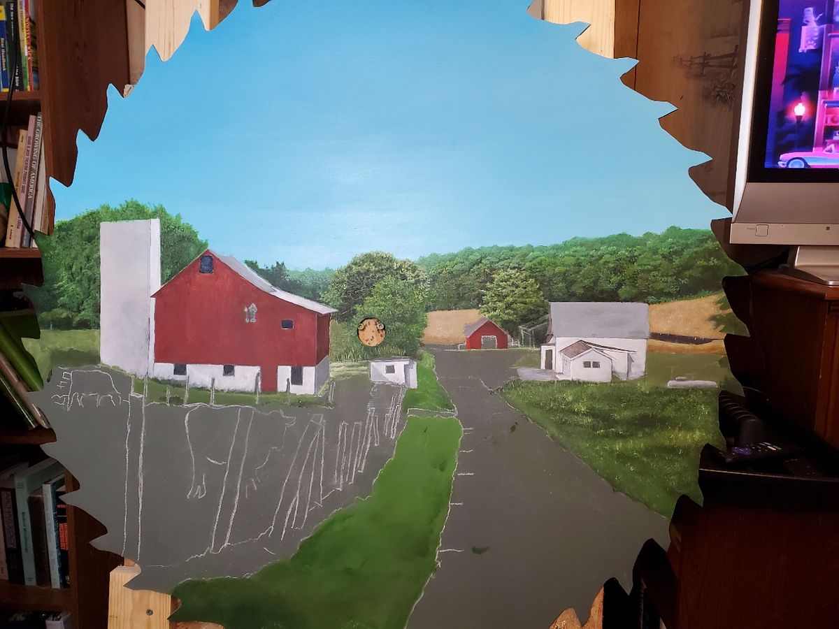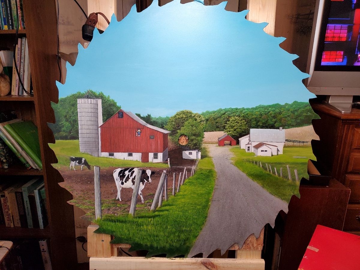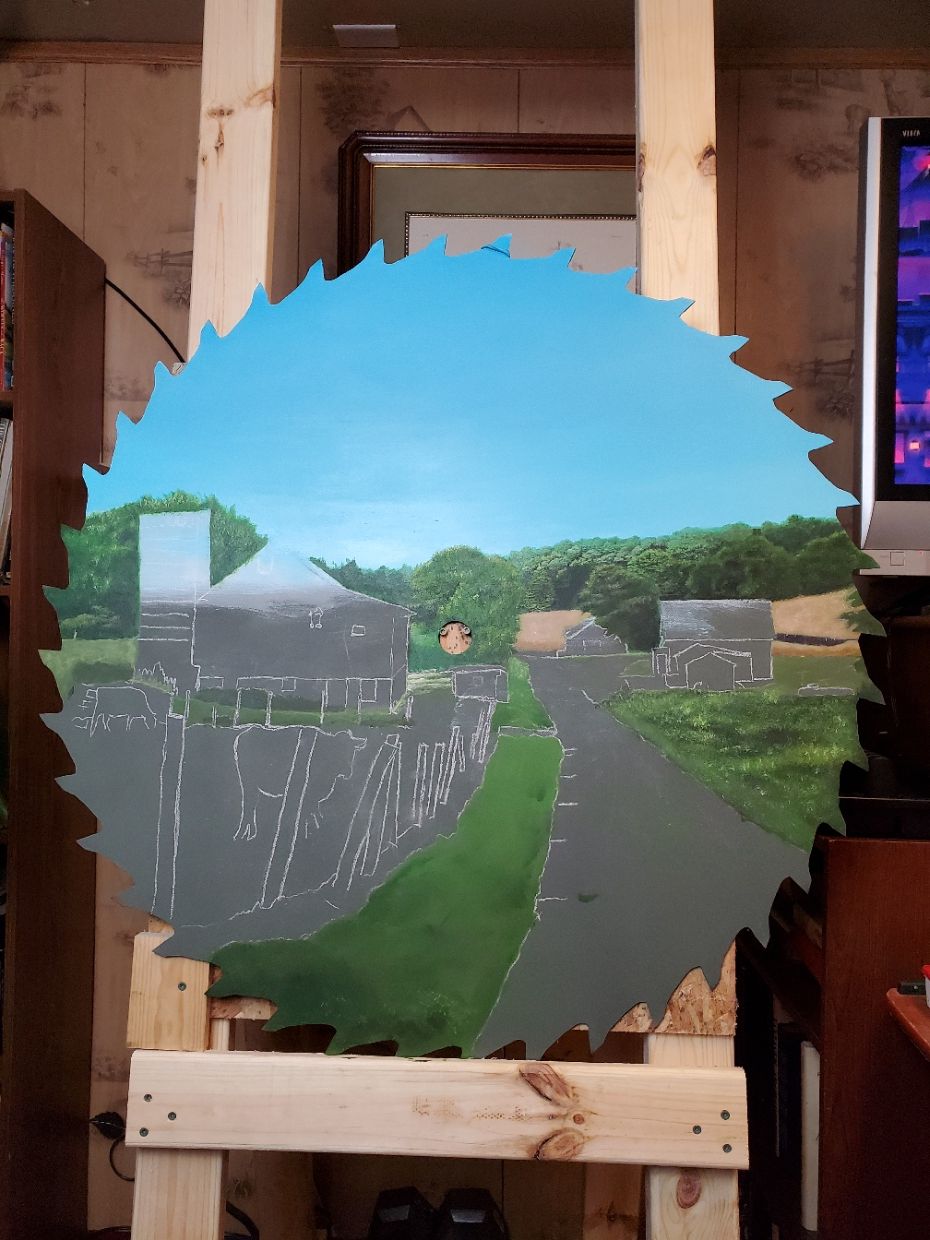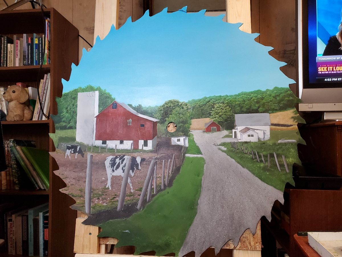 I was pleased to do a saw blade painting of a beautiful small farm not far from where I live. It took about two months to complete.